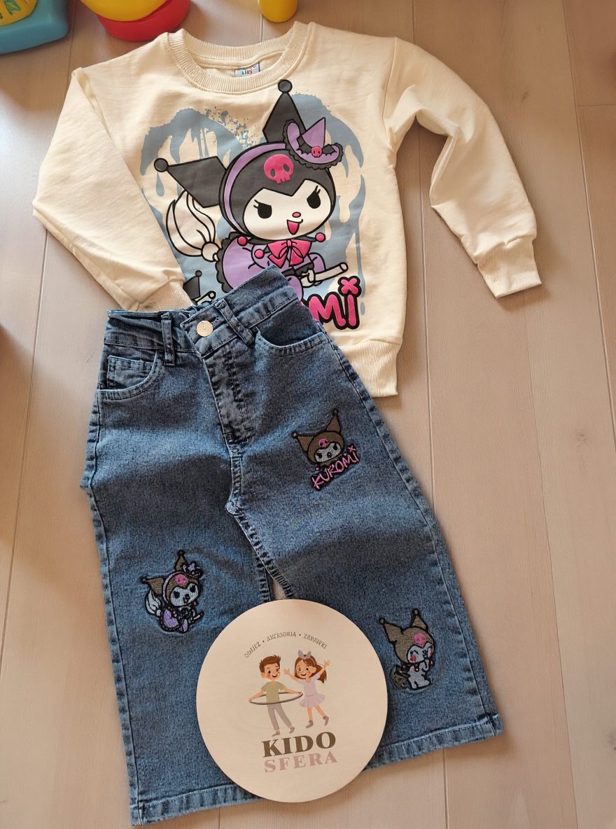 👧 Komplet dla dziewczynki – bluza + jeansy z nadrukiem Kuromi