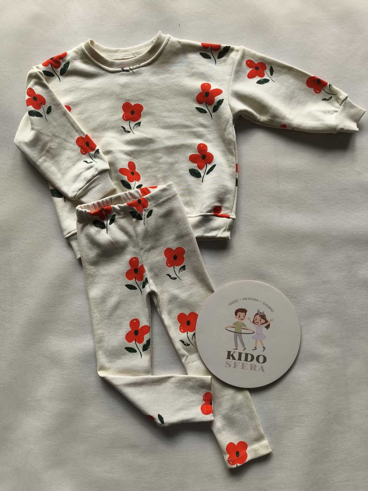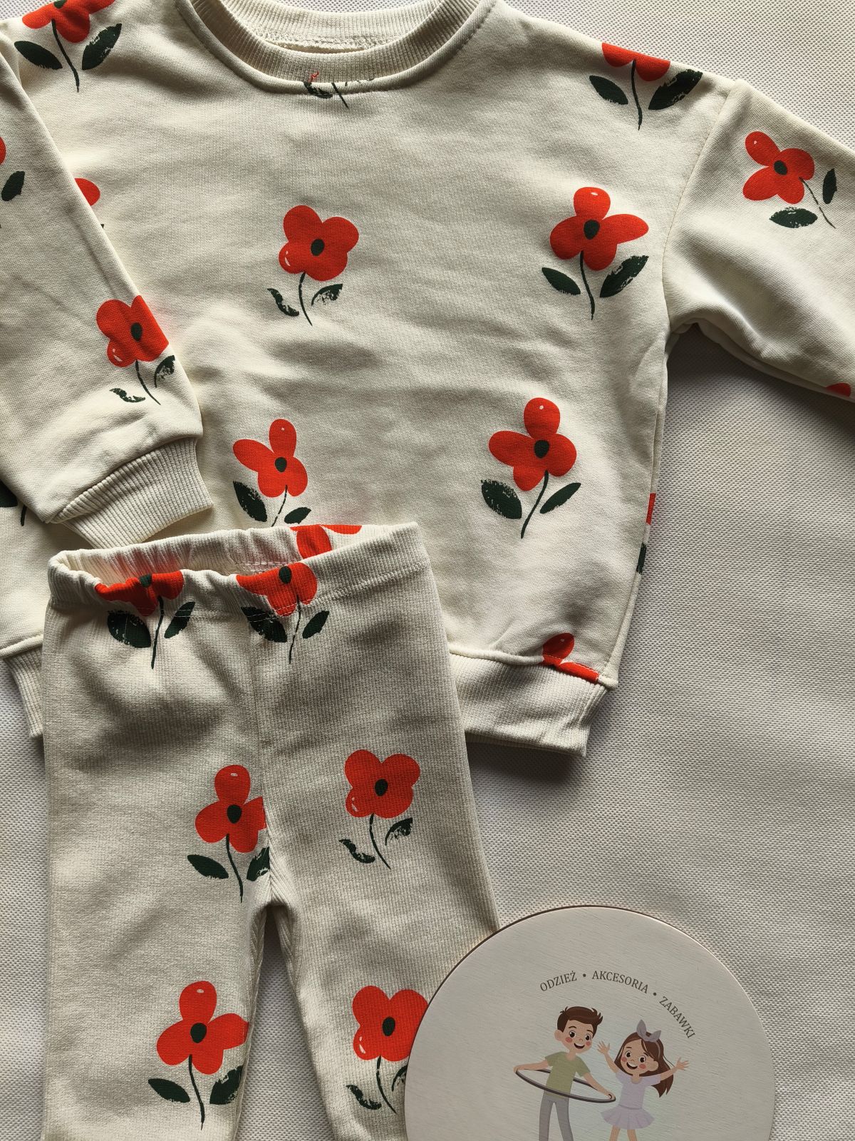 Jasnobeżowy komplet z pomarańczowymi kwiatkami.🏵️