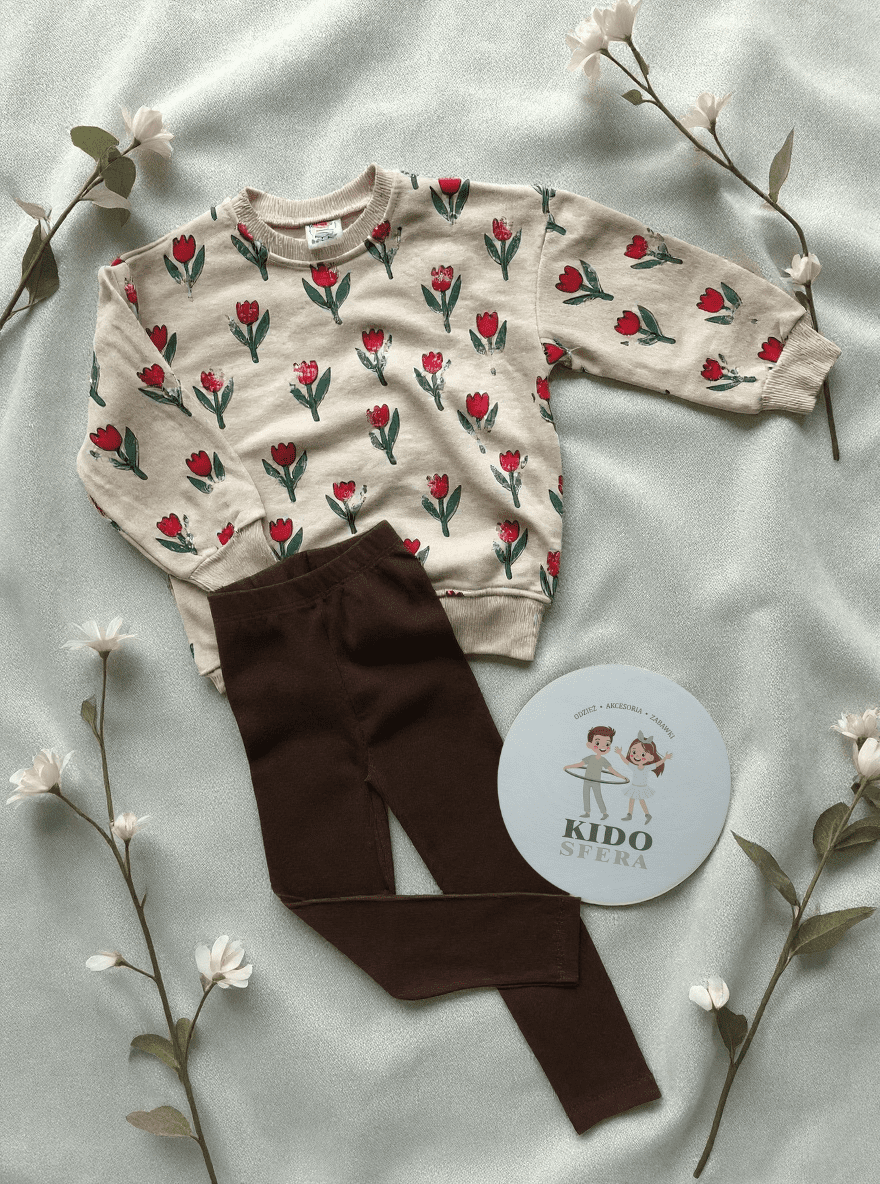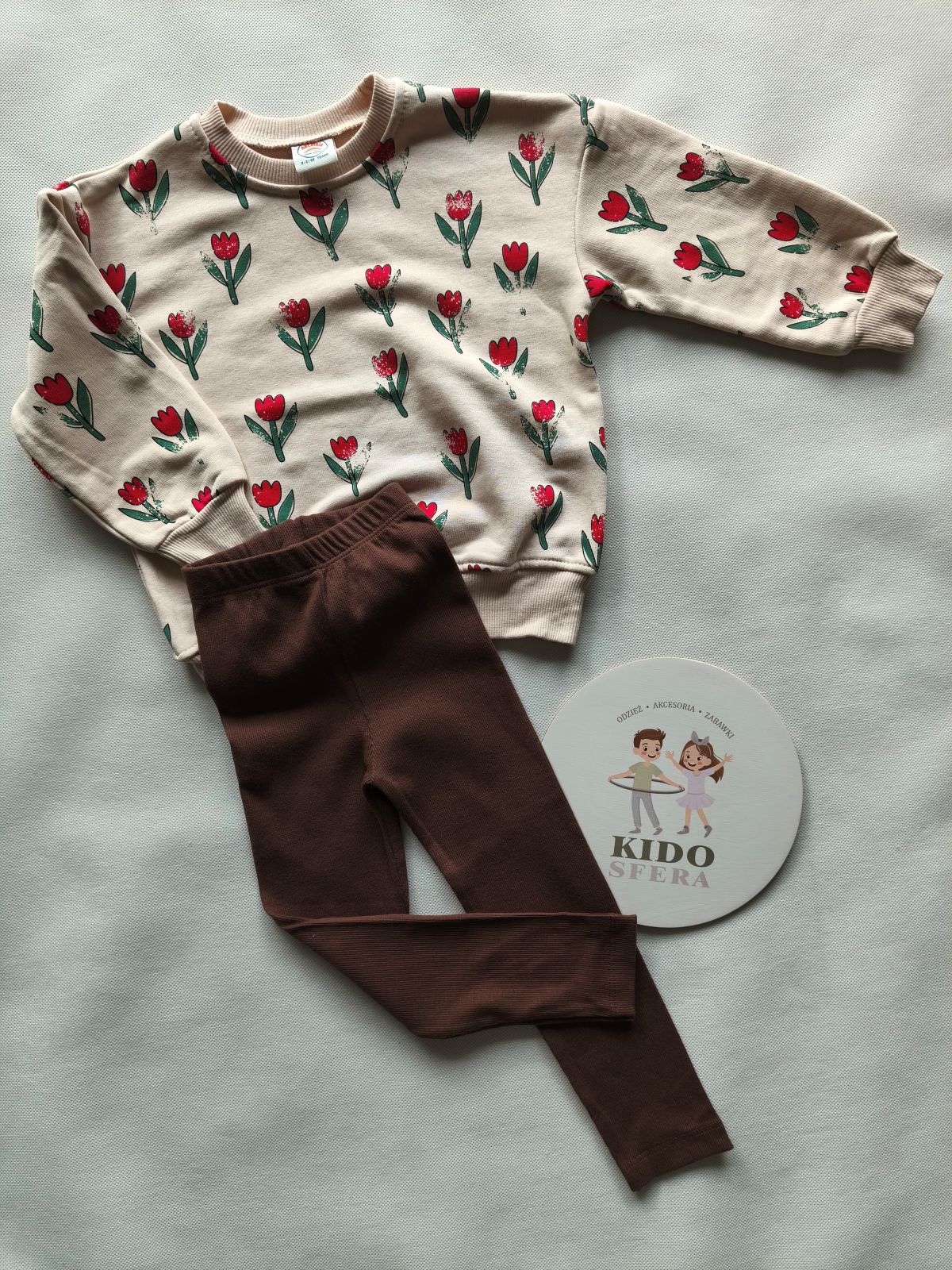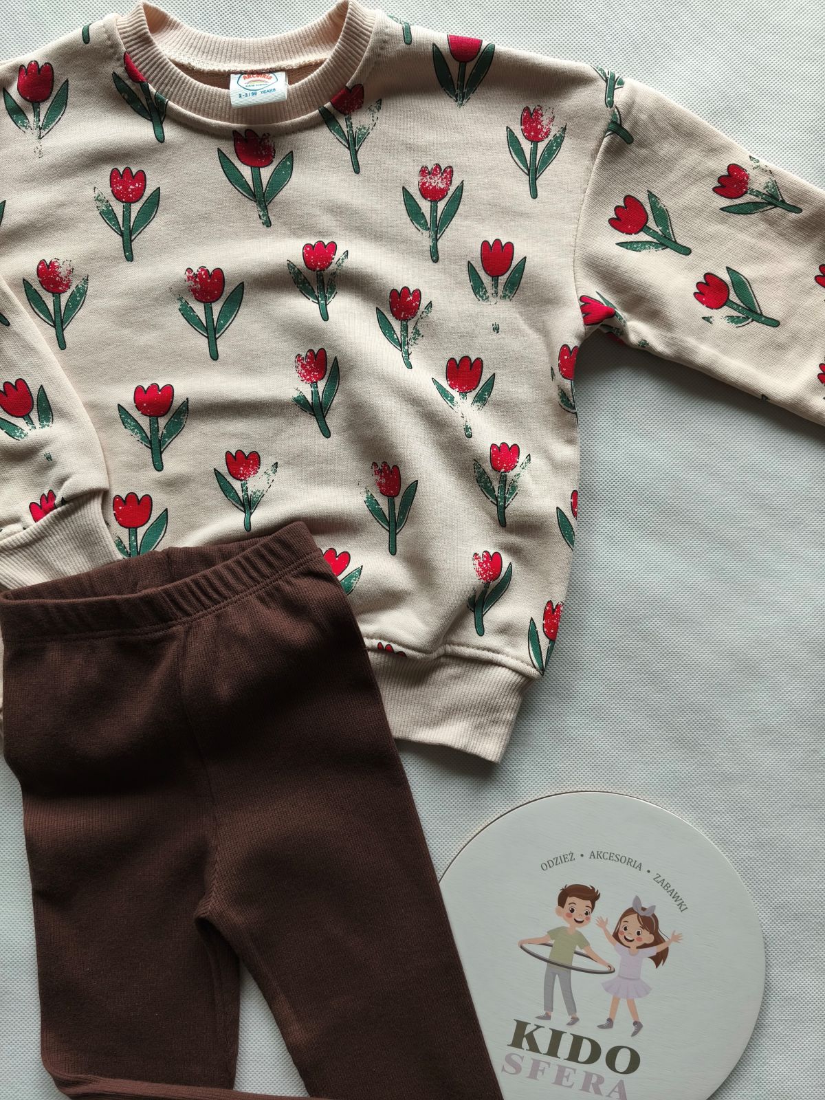 Kremowa bluza w tulipany + czekoladowe legginsy.🤎