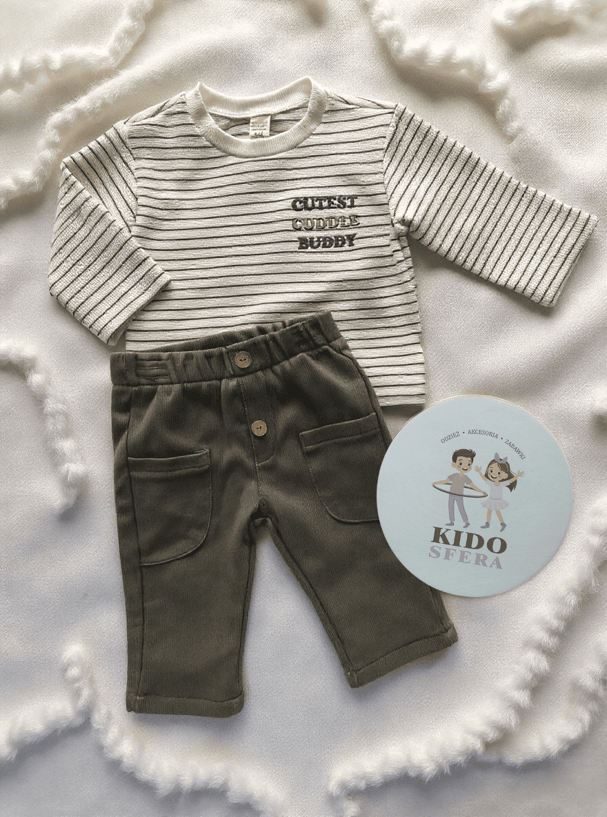 Bluzka w paski, spodnie w prążki, czyli chłopięcy styl w wersji „nie do zdarcia” 😎.