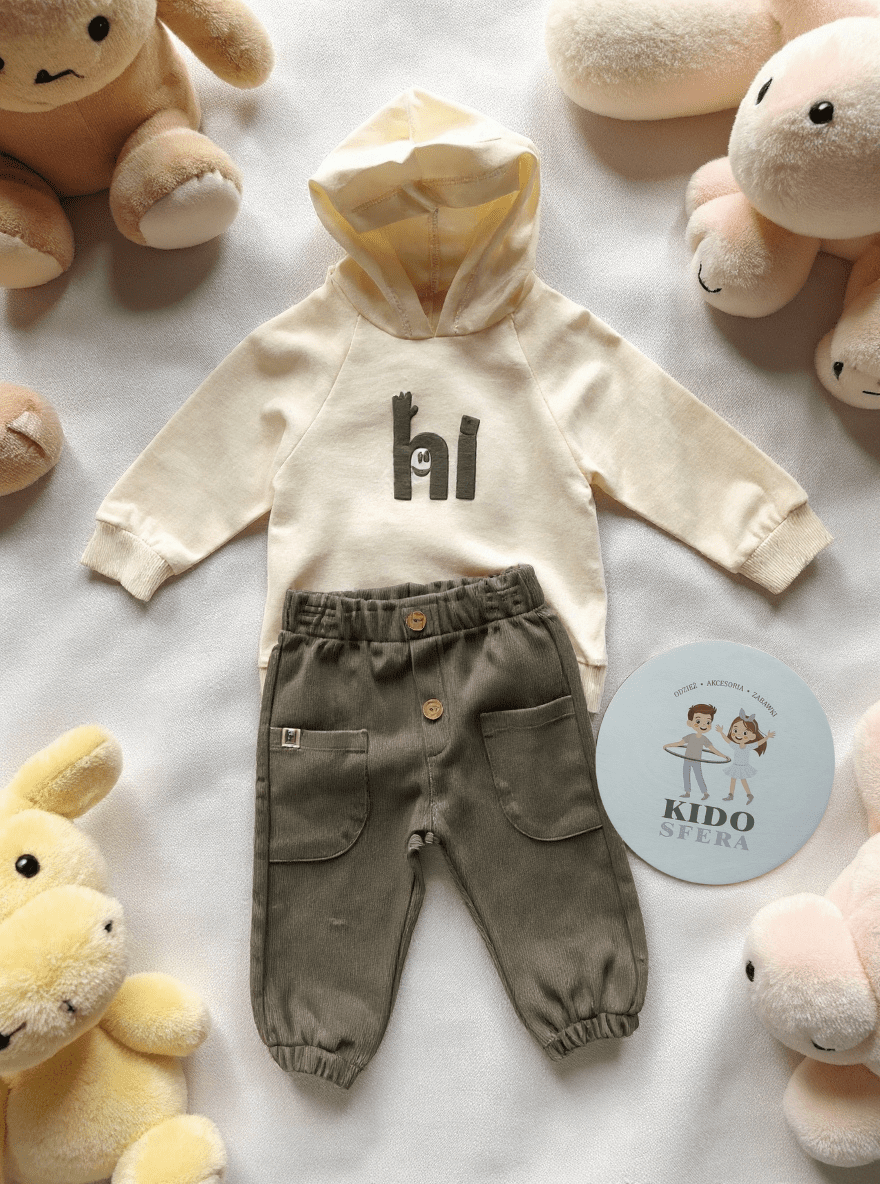 Komplet dla malucha: szara bluza z naszywką „HI” + wygodne spodnie.🤍