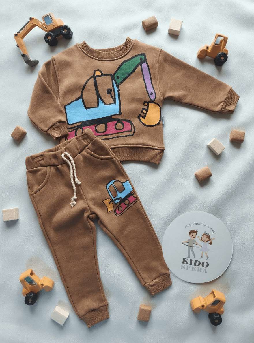 Komplet dresowy chłopięcy z koparką -ocieplany, 100% bawełna