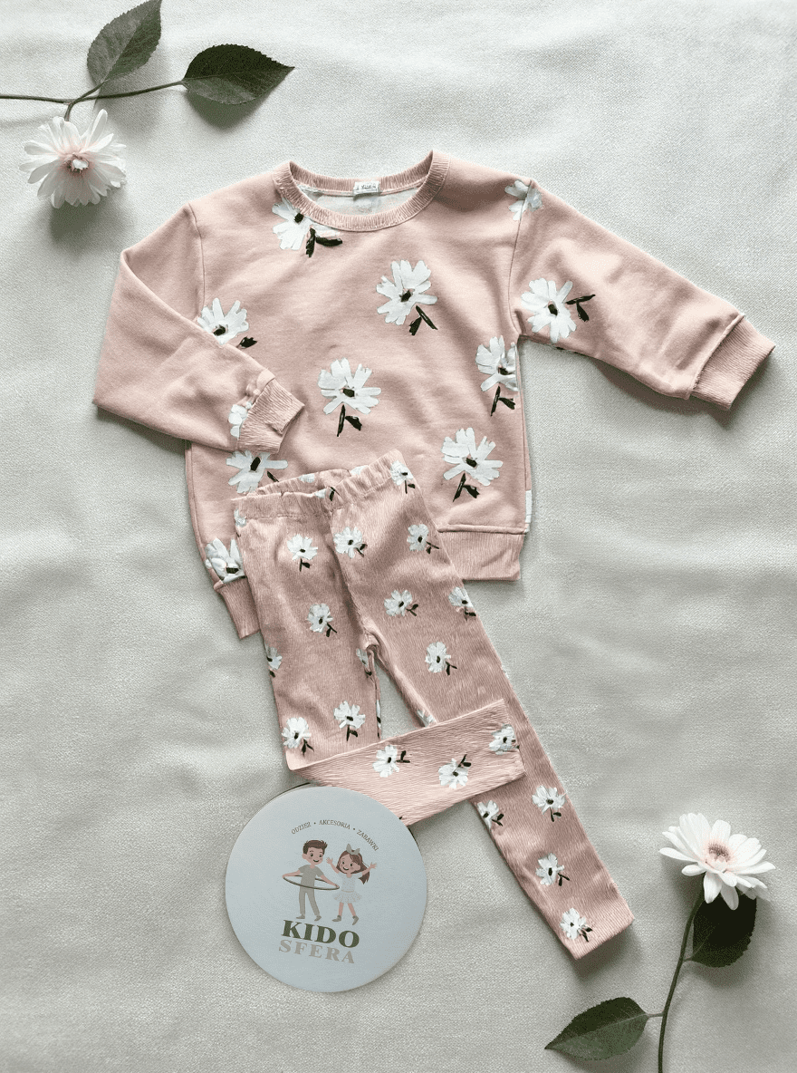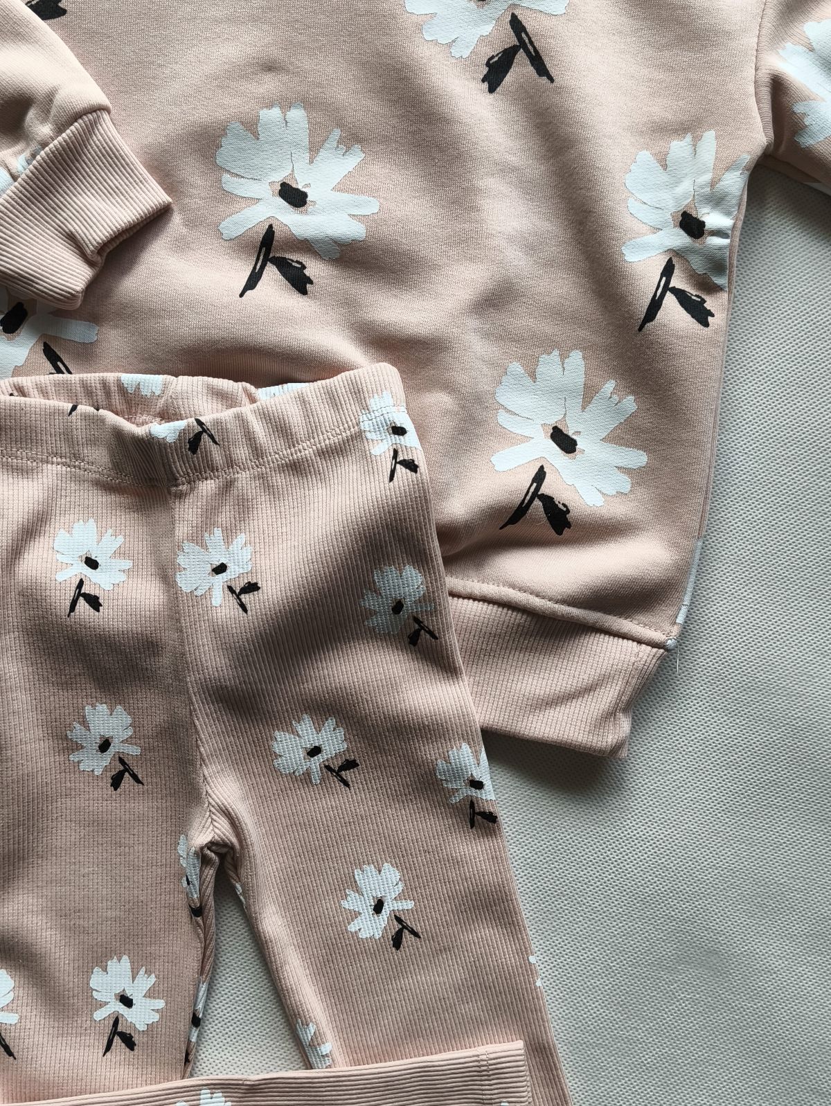 Bluza i legginsy w lekkim, dziewczęcym stylu.