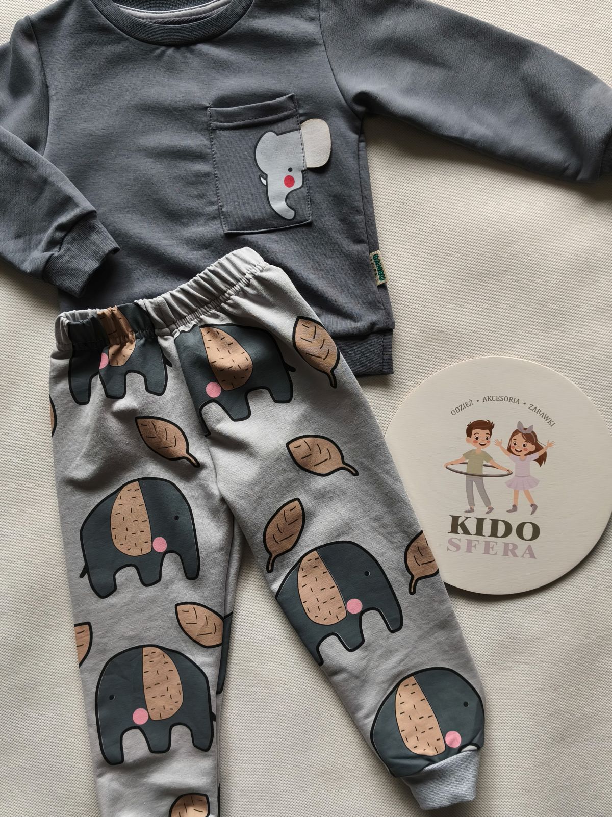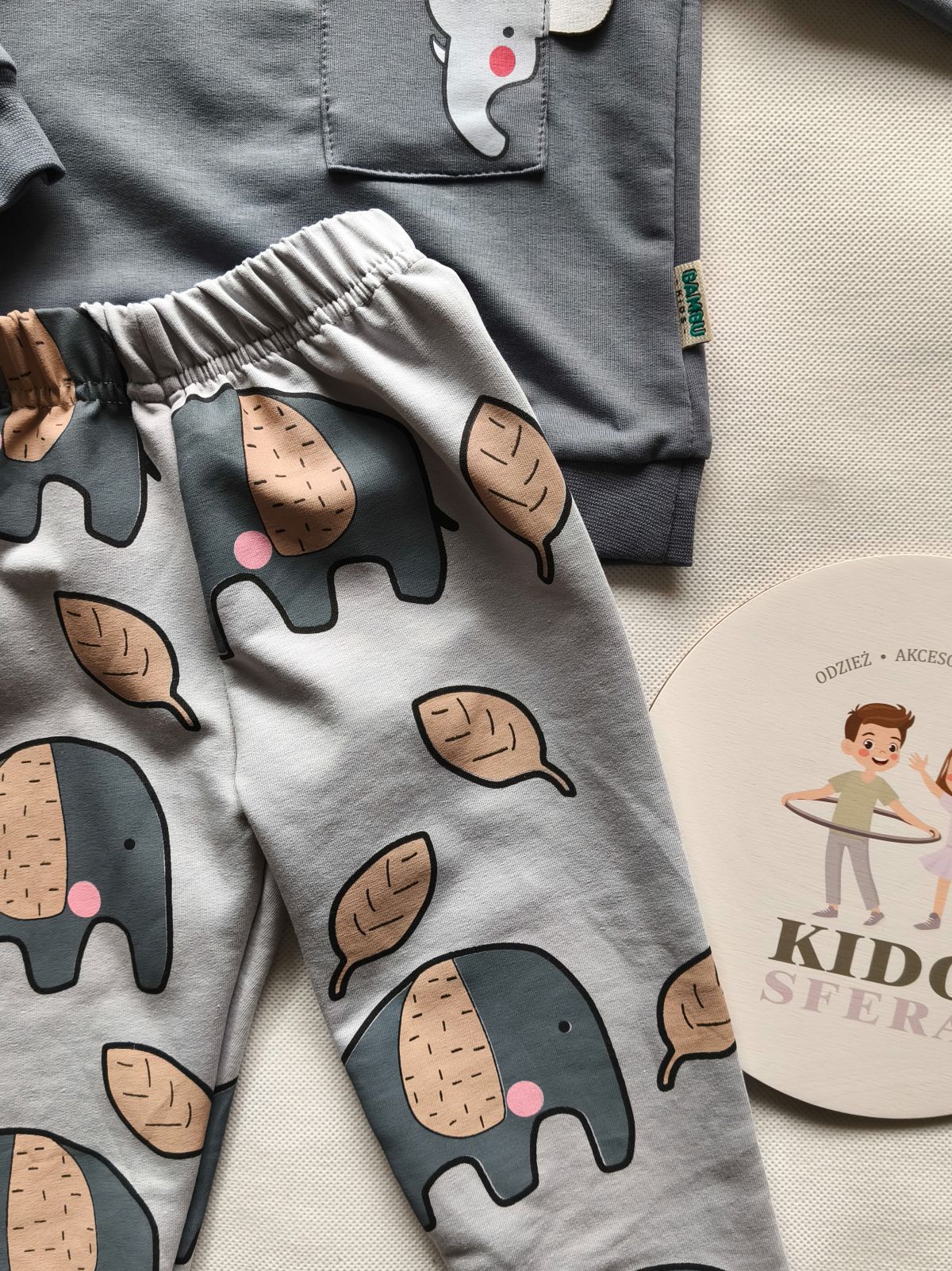 Komplet dla chłopca: szara bluza + spodenki z nadrukiem słoników.🦣