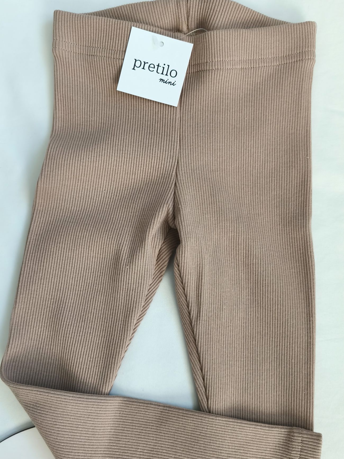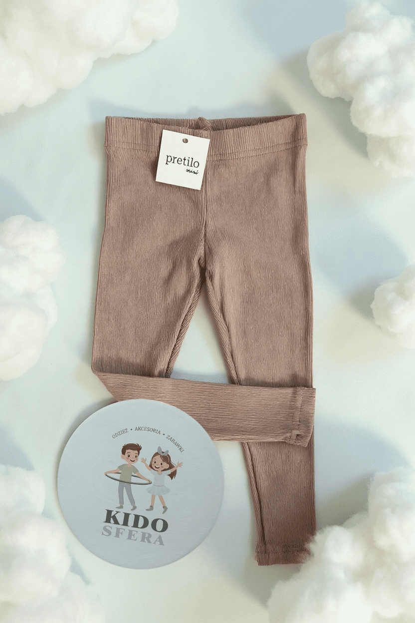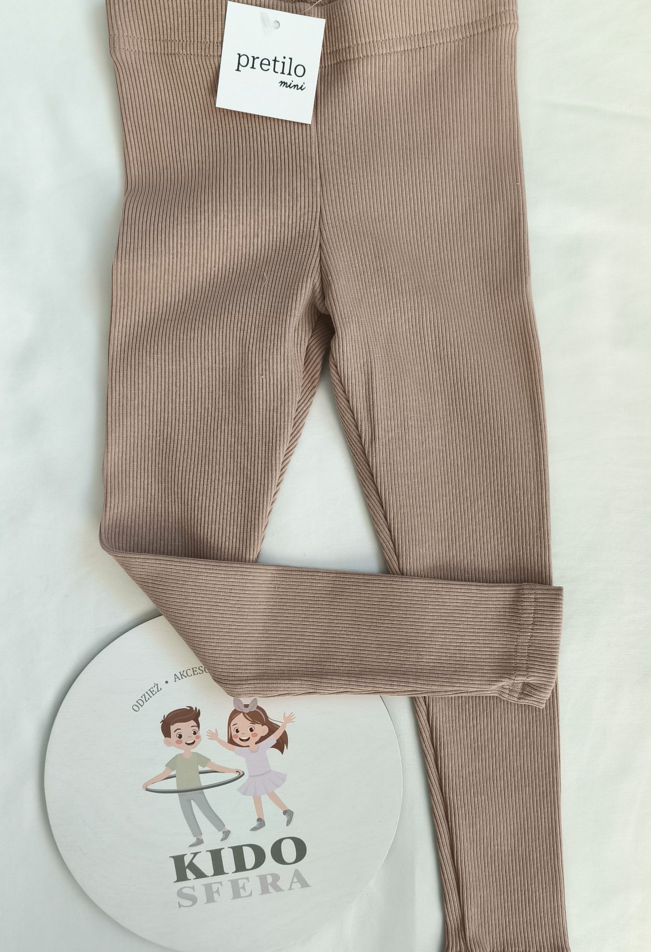 Beżowe legginsy prążkowane od polskiego producenta Pretilo Mini, uszyte w 100% z bawełny.