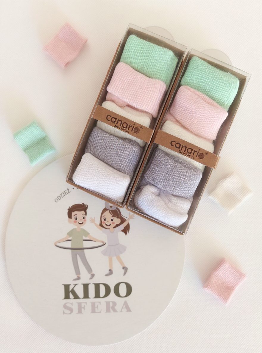 🧦 Zestaw 5 par skarpetek niemowlęcych – 100% bawełna, pastelowe kolory